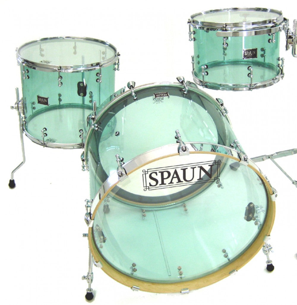 Shell Pack- 8x12 rack tom, 14x16 floor tom, 18x22 kick drum.  Coke Bottle Acrylic with Off Set Lugs and Chrome Hardware. Features our VTL Vintage Tube Lugs, Double 45 Degree Edges, SSS Mounts on Rack Toms, and 100% Acrylic Shells.