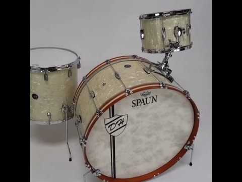 Even more retro styling than our typical Jazz Custom kits, this setup features center mounted Beaver Tail Lugs on the rack tom and massive 14x28 kick drum. Clip on bass drum spurs, Mahogany stained bass drum hoops with matching inlays, and 9mm floor tom legs.