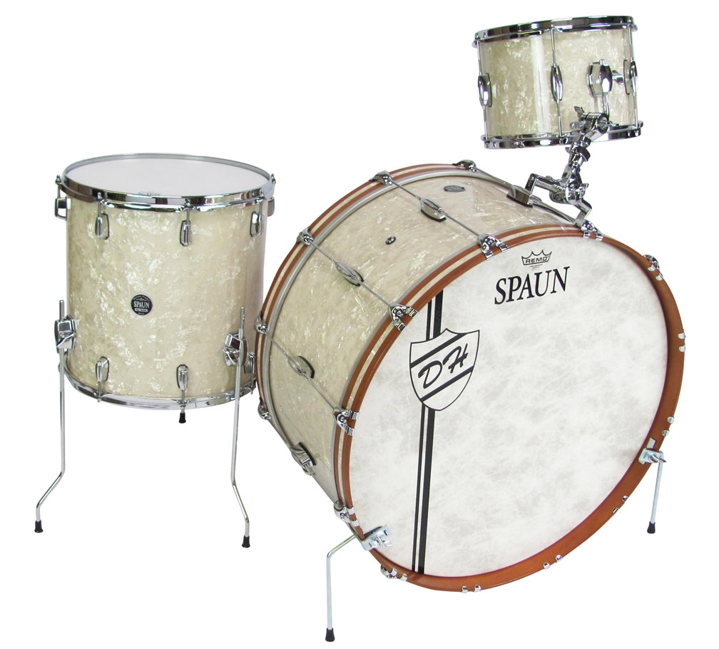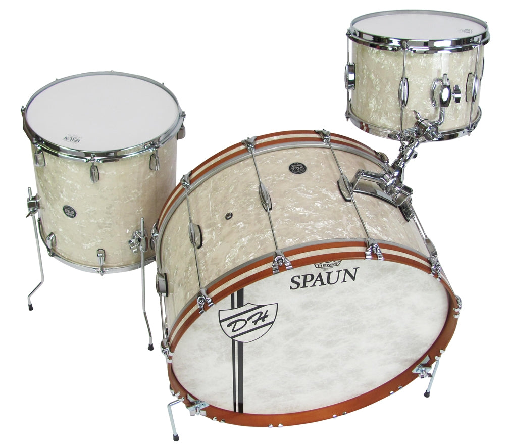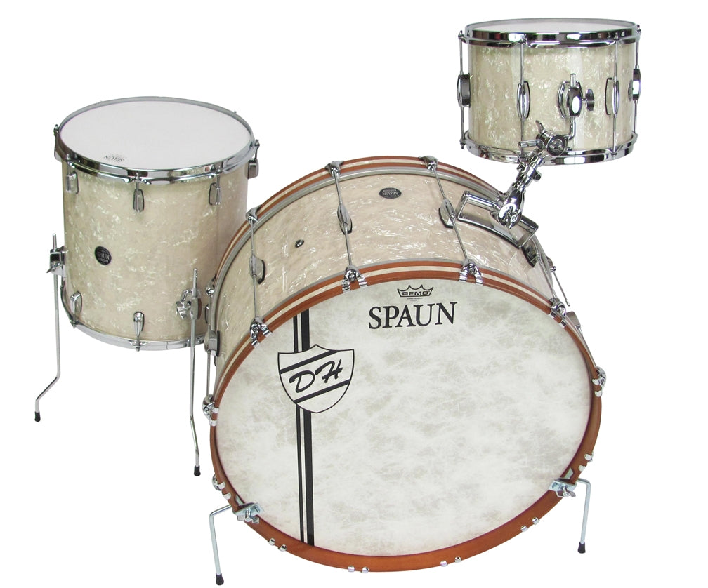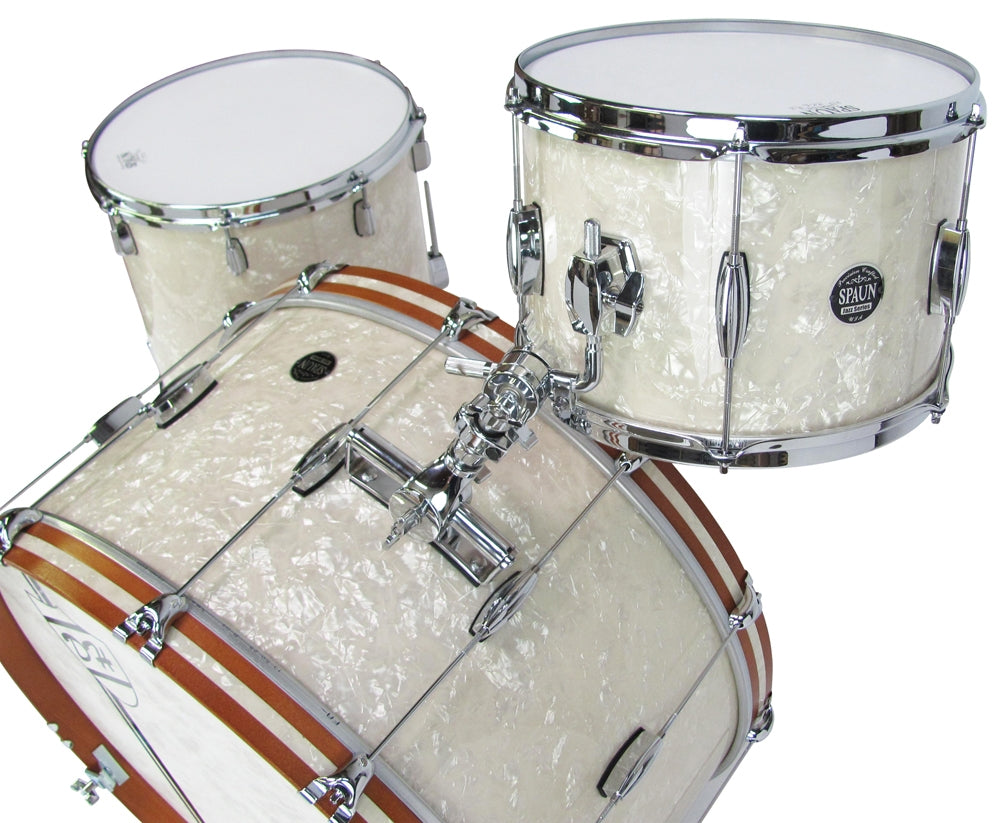 Shell Pack- 9x12 rack tom, 14x16 floor tom, 14x28 kick drum. Aged White Pearl with Chrome Hardware.