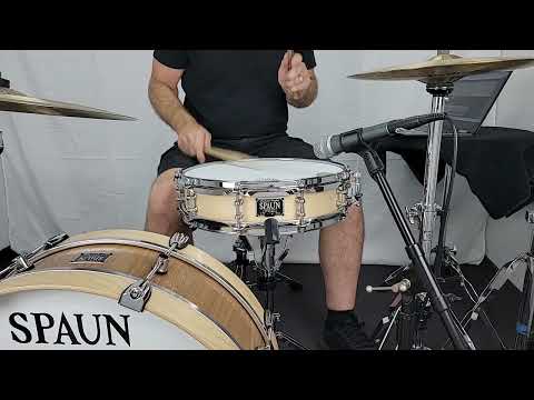 Spaun 3.5x14 snare drum featuring our 100% 8-ply Maple Shell, Vintage Tube Lugs, Double 45 Degree Bearing Edges, and Hyper-Sensitive Snare Bed. Blonde Satin Lacquer Finish with Chrome Hardware.