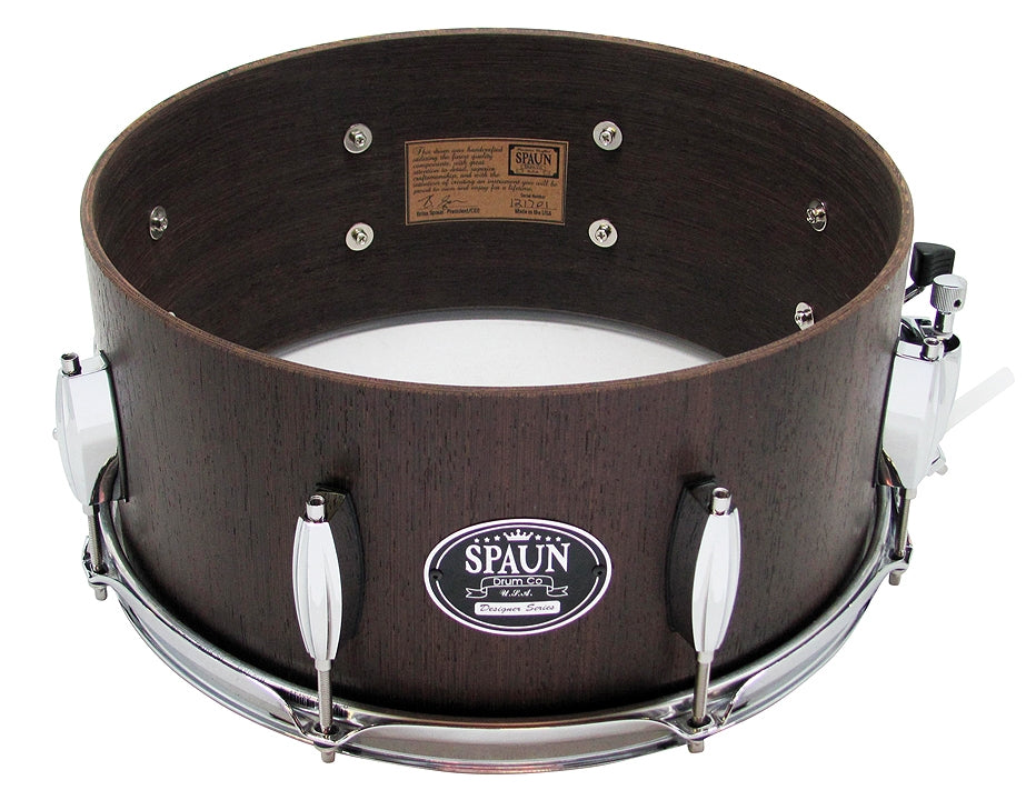 Designer Wenge 7-ply Shell, Beavertail Lugs, Double 45 Degree Bearing Edges, and Hyper-Sensitive Snare Bed. Natural Satin Lacquer Finish with Chrome Hardware.