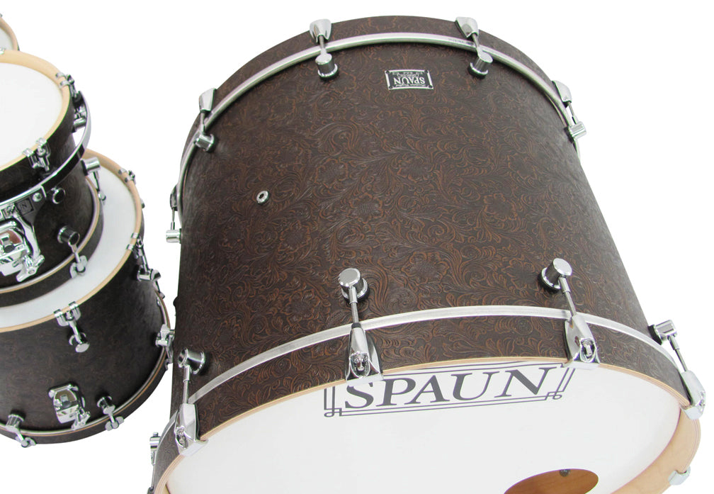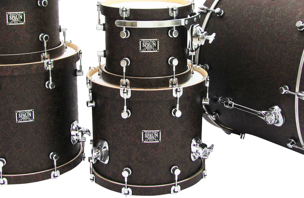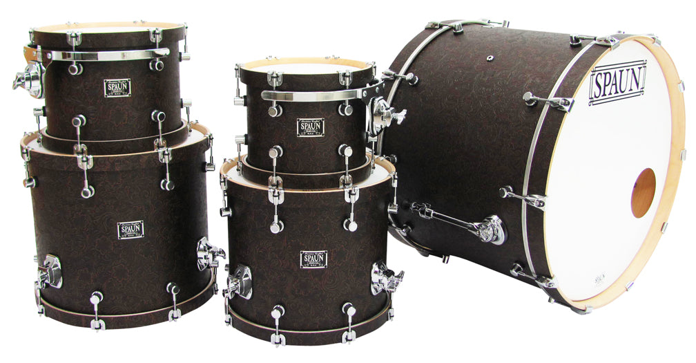 Shell Pack- 8x10 rack tom, 9x12 rack tom, 12x14 floor tom, 14x16 floor tom, 18x24 kick drum. Western Brown Finish with Chrome Hardware. Features our proprietary SBR Solid Brass Resonator Lugs, Double 45 Degree Edges, SSS Mounts on Rack Toms, Vintage Wood Hoops & Claws, and 100% Maple Shells.