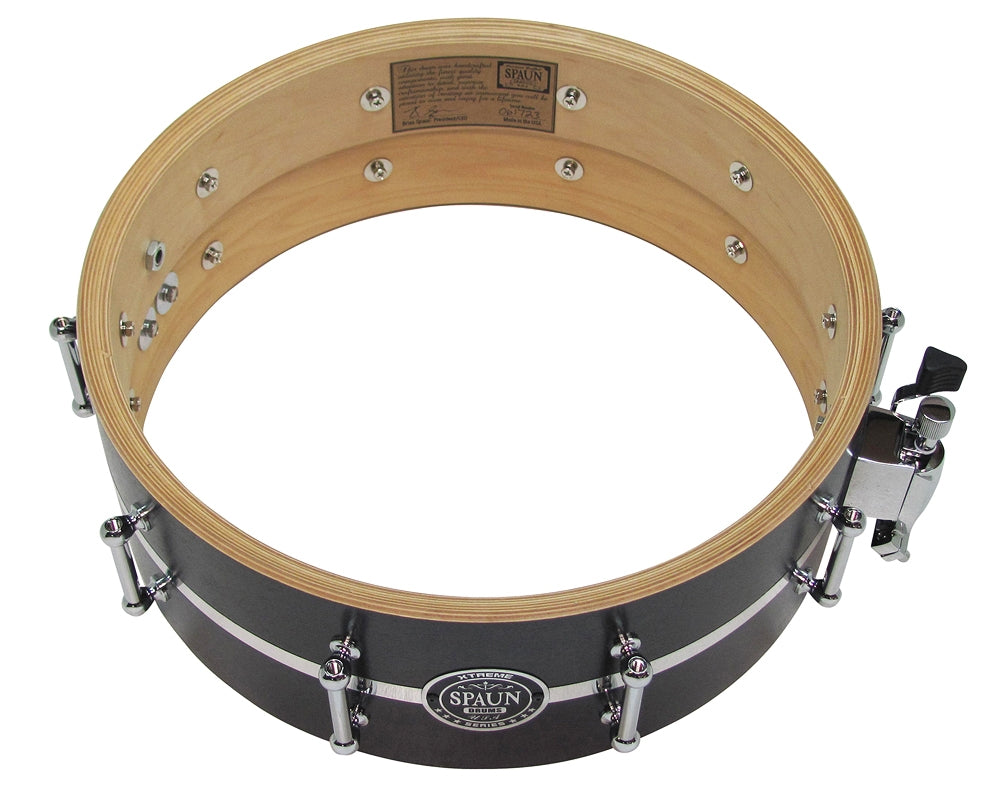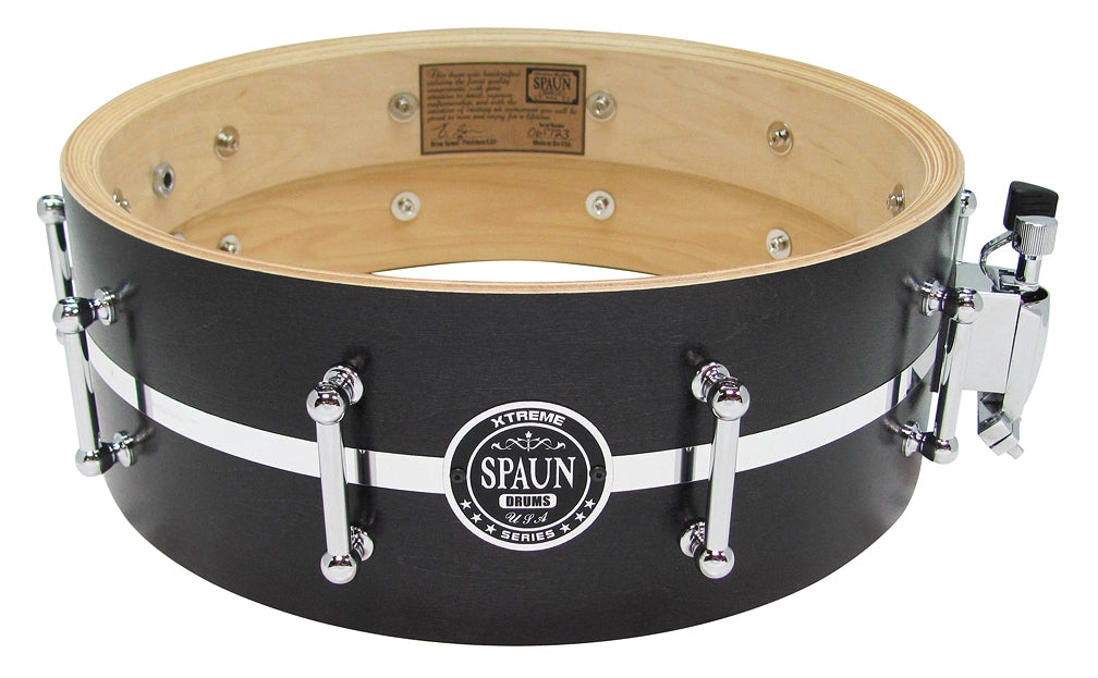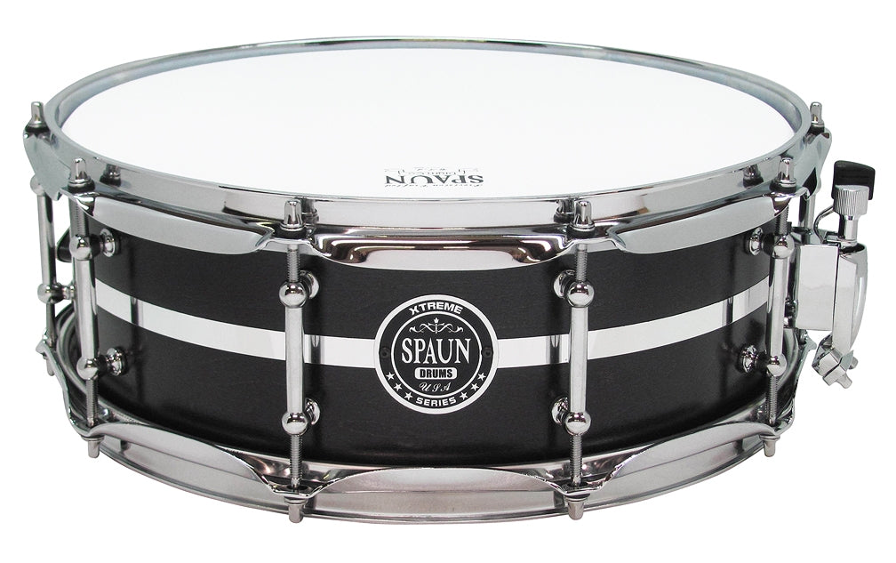 5x14 Snare Drum. Black Satin Lacquer Finish with or without Mirror Chrome Stripes.