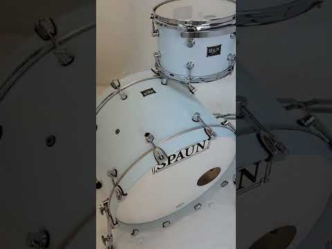 Shell Pack- 8x12 rack tom, 14x16 floor tom, 14x22 kick drum. Baby Blue Satin Lacquer Finish with Chrome Hardware. Features our proprietary SBR Solid Brass Resonator Lugs, Double 45 Degree Edges, SSS Mounts on Rack Toms, and 100% Maple Shells.