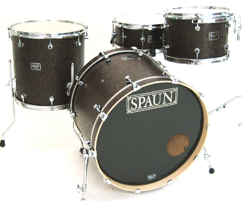 Shell Pack- 8x12 rack tom, 16x16 floor tom, 16x22 kick drum. Western Brown with Chrome Hardware. Features our SBR Solid Brass Resonator Lugs, Double 45 Degree Edges, SSS Mounts on Rack Toms, and 100% Maple Shells.