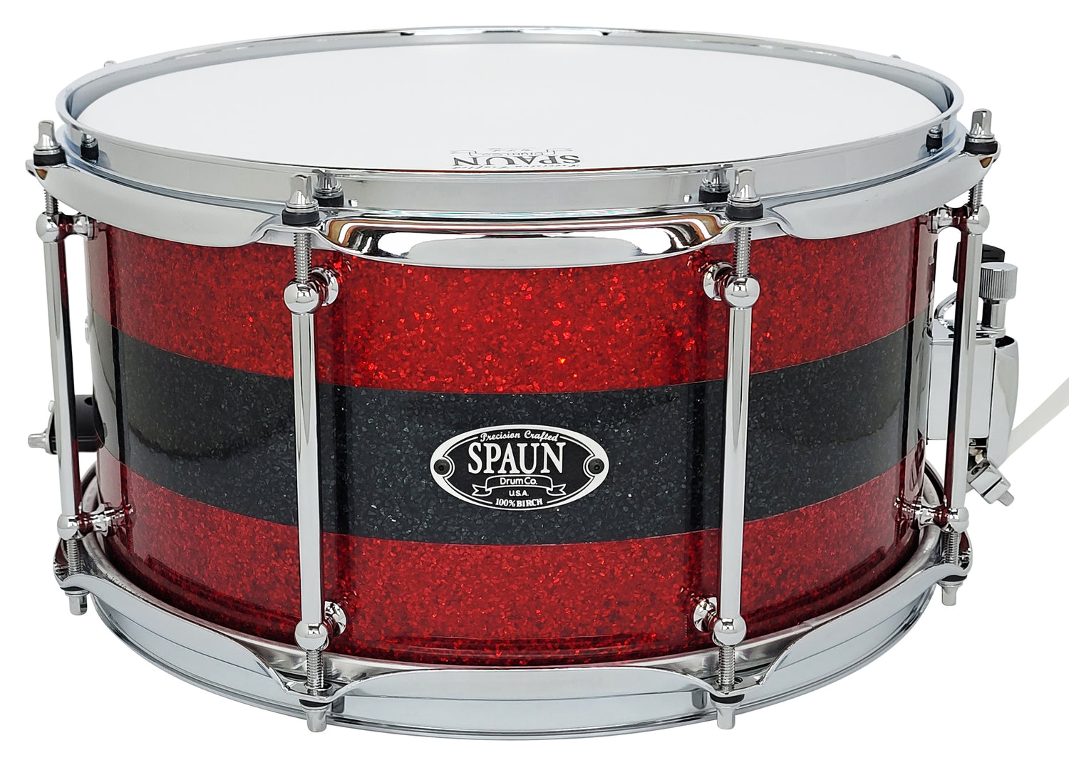 Features our 100% 8-ply Birch Shell, VTL Vintage Tube Lugs, Double 45 Degree Bearing Edges, and Hyper-Sensitive Snare Bed. Red & Black Glass Finish with Chrome Hardware.