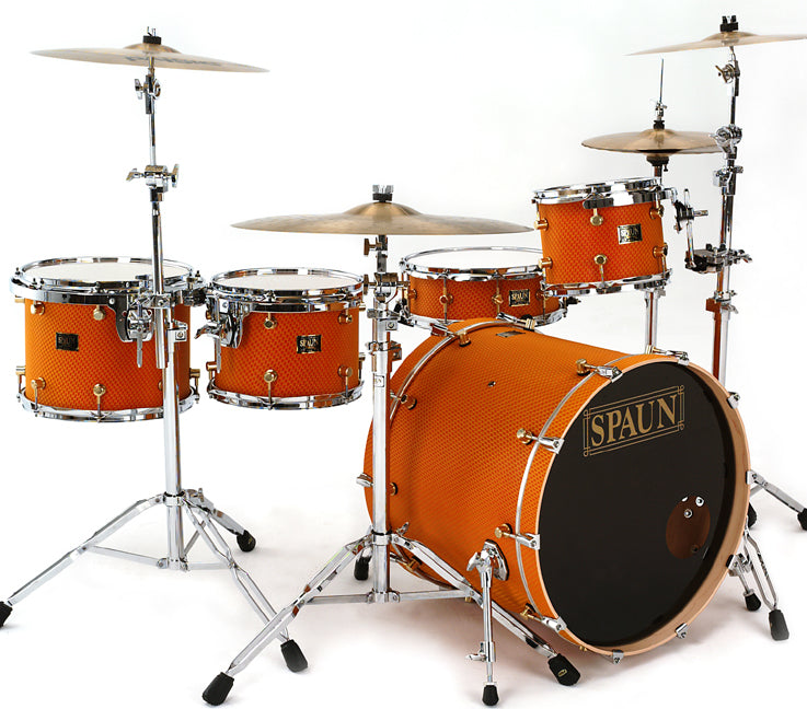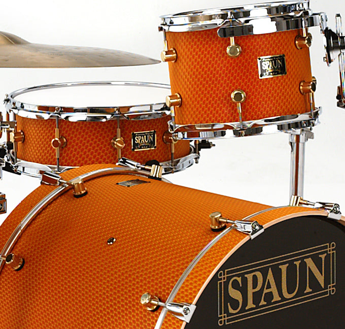 Shell Pack- 8x10 rack tom, 9x12 rack tom, 11x14 rack tom, 18x22 kick drum. Honeycomb finish with Brass Lugs and Chrome Hardware. Features our SBR Solid Brass Resonator Lugs, Double 45 Degree Edges, and 100% Maple Shells