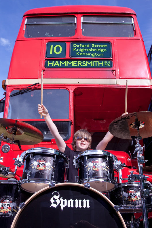 Charlie started drumming in 2009 and after going to Newbury Rock School in early 2011, the director / owner of the school Leo Westby put together a band of 8 to 10 year olds, which included Charlie. The band was called The Mini Band.