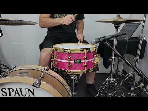 This killer Spaun snare drum features our 100% 8ply Bubinga shell, our proprietary SBR Solid Brass Resonator Tube Lugs, Double 45 Degree Bearing Edges, and Hyper-Sensitive Snare Bed.