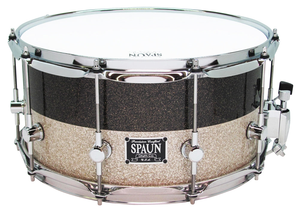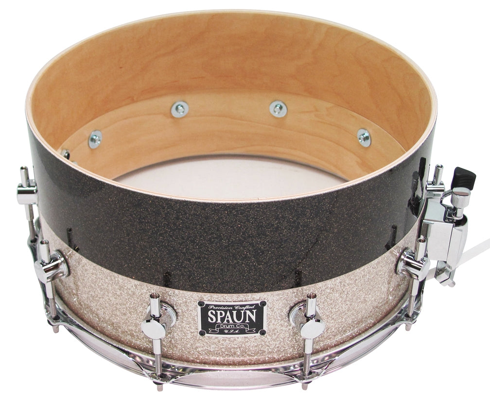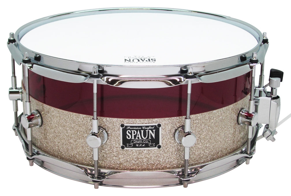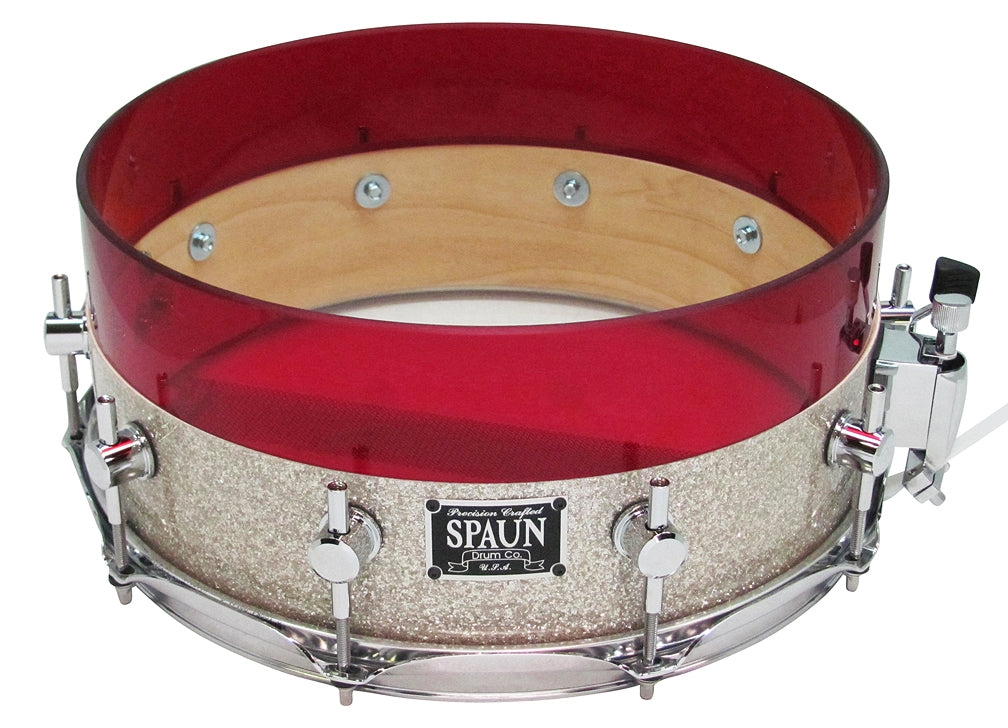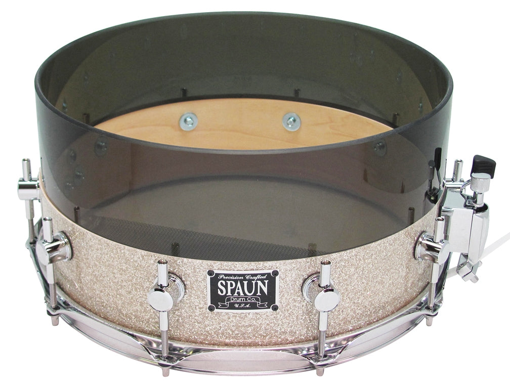 Here's a very unique "convertible" snare, only from Spaun! We call it the 3 in 1 snare. You get a 7x14 Maple, 7x14 Maple/Acrylic Hybrid, and 6x14 Maple/Acrylic Hybrid all out of one package! Just substitute the various shell inserts to completely change the look and voice of this drum. Features our SBR Solid Brass Resonator Lugs, Double 45 Degree Bearing Edges, and Hyper Sensitive Snare Bed.