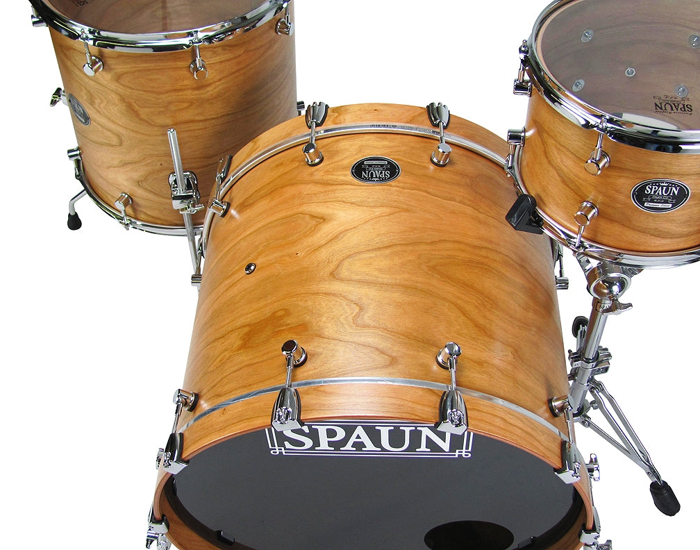 Shell Pack- 8x12 rack tom, 16x16 floor tom, 18x22 kick drum. Beautiful Natural Satin Lacquer Finish with Chrome Hardware. Features our SBR Solid Brass Resonator Lugs and Double 45 Degree Edges.