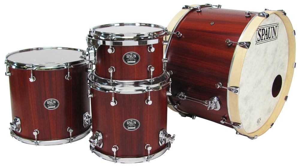 Shell Pack- 8x12 rack tom, 13x14 floor tom, 15x16 floor tom, 16x24 kick drum. Natural Satin Lacquer with Chrome Hardware. Features our proprietary SBR Solid Brass Resonator Lugs, Classic Rounded Bearing Edges, SSS Mounts on Rack Toms.