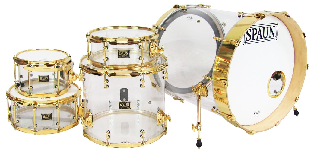 Shell pack- 5x12 compact rack tom, 16x16 floor tom, 22x22 kick drum with Extended Bass Drum Hoop, 6.5x14 snare, and 7x10 snare. Features our VTL Vintage Tube Lugs, Double 45 Degree Edges, and Acrylic Shells with Gold Hardware. Choose from a variety of colors.