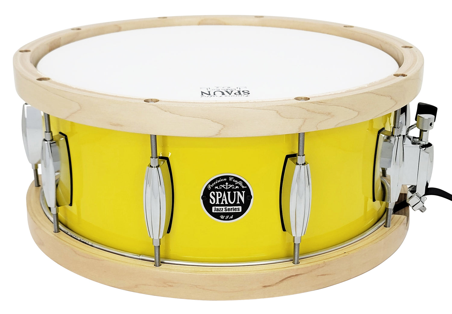 Features our 100% Maple 8-ply Shell with or without Reinforcement Rings plus Super Wood Hoops, Beaver Tail Lugs, Classic Rounded Bearing Edges for a darker more subtle voice, and Hyper Sensitive Snare Bed. Gloss Yellow Finish with Chrome Hardware. Choose reinforcement rings if you want a shorter decay and higher fundamental pitch on your drums, without reinforcement rings if you want a more open, resonant sound with a lower pitch.