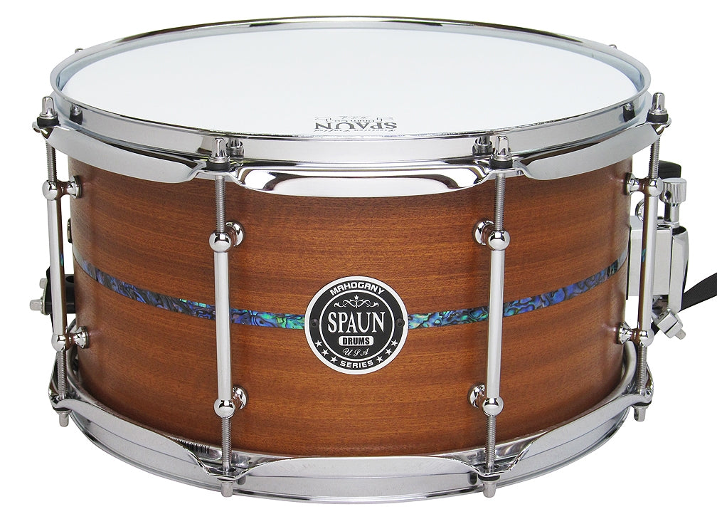 Features our Vintage Mahogany/Poplar 6-ply Shell with Maple Reinforcement Rings. The inner and outer plies are Mahogany with the core being Poplar. VTL Vintage Tube Lugs, Classic Rounded Bearing Edges for a more subtle voice, and Hyper-Sensitive Snare Bed. Finished in a beautiful satin lacquer with Abalone Inlay and Chrome Hardware.