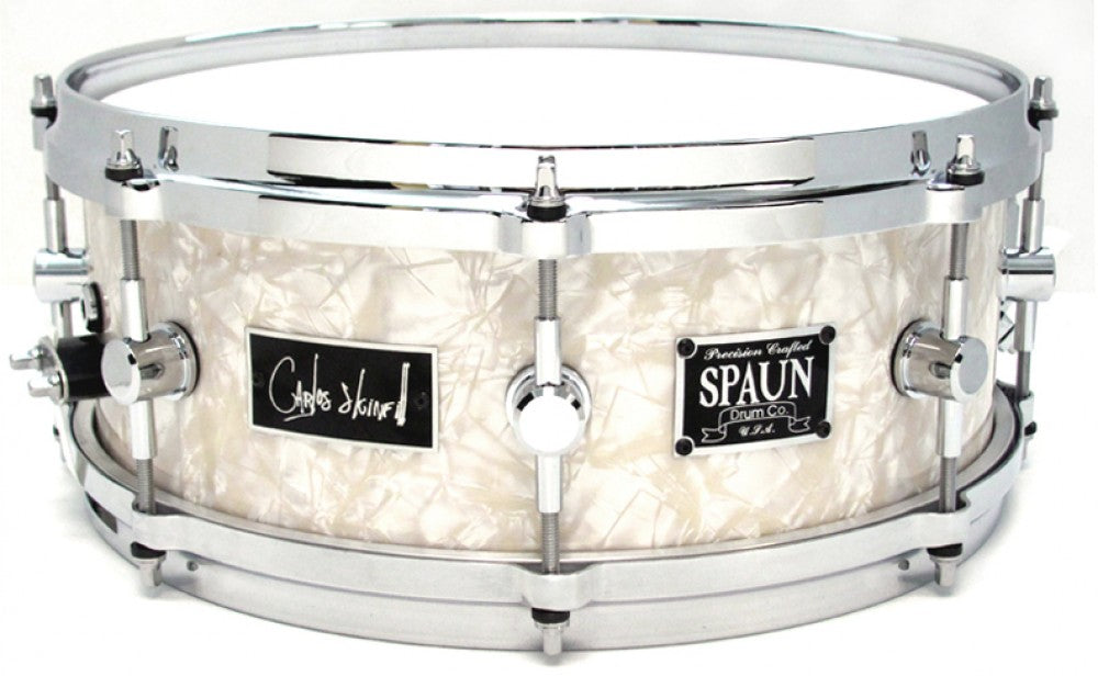 Features our 100% 8-ply Maple Shell, SBR Solid Brass Resonator Lugs, Double 45 Degree Bearing Edges, and Hyper-Sensitive Snare Bed. Aged White Pearl with Die Cast Hoops and Chrome Hardware. Optional Custom Signature Badges.