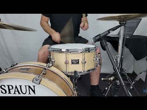 Spaun 6.5x14 snare drum featuring our 100% 8-ply Maple Shell, Double Sided SBR Solid Brass Resonator Lugs, Double 45 Degree Bearing Edges, and Hyper-Sensitive Snare Bed. Blonde Satin Lacquer Finish with Chrome Hardware.