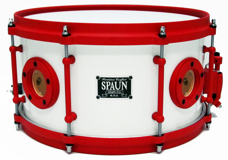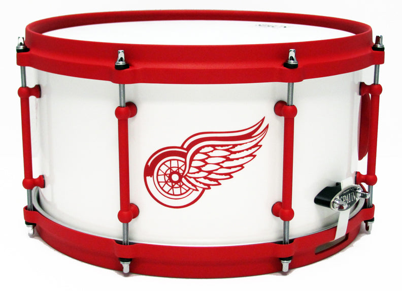 Features our 100% Maple 8-ply Shell with Reinforced Vents, VTL Vintage Tube Lugs, Double 45 Degree Bearing Edges, and Hyper-Sensitive Snare Bed. Satin White Lacquer Finish with Red Wings Logo, Flat Red Hardware, and Die Cast Hoops.