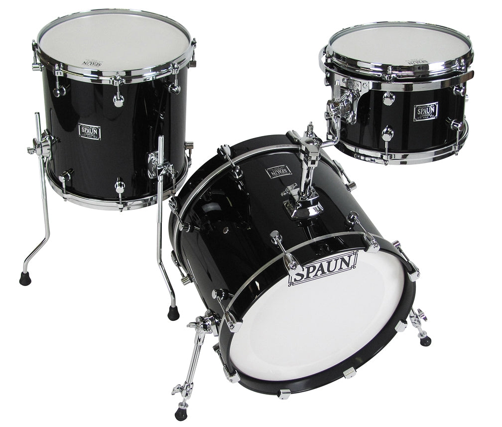Shell Pack- 8x12 rack tom, 14x14 floor tom, and 14x18 kick drum. Maple/Poplar Vintage Shell features an inner and outer ply of Maple with a Poplar core and can be ordered with or without maple reinforcement rings. Beautiful Piano Black Lacquer Finish with Chrome Hardware. Features our SBR Solid Brass Resonator Lugs, Die Cast Hoops on toms, Single tom mount on kick, Classic Rounded Bearing Edges, and SSS Mount on Rack Tom.
